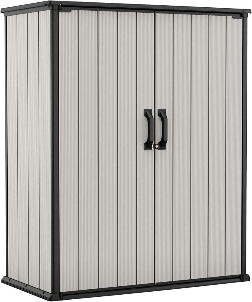 Die Keterbox Premier Tall ist ein robuster und praktischer Geräteschuppen aus rippenverstärkten, doppelwandigen Platten. Mit Abmessungen von 140 x 73,6 x 170 cm bietet er ausreichend Platz zur Aufbewahrung von Gartenzubehör oder Kissen. Die Nut- und Federkonstruktion ermöglicht eine einfache und schnelle Montage. Mit einer abschließbaren Griffvorrichtung bietet der Schuppen Sicherheit für Ihre Gegenstände (Vorhängeschloss nicht enthalten). Hergestellt aus wetterfestem, wasserdichtem, UV-beständigem und farbechtem Polypropylen ist die Keterbox Premier Tall wartungsfrei und bietet zuverlässigen Schutz. Verstellbare Halterungen ermöglichen die Anbringung eines Regals im Inneren (Regal nicht enthalten), um eine optimale Organisation zu gewährleisten.